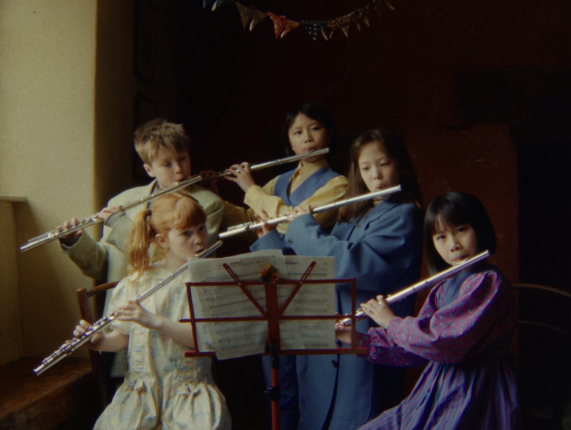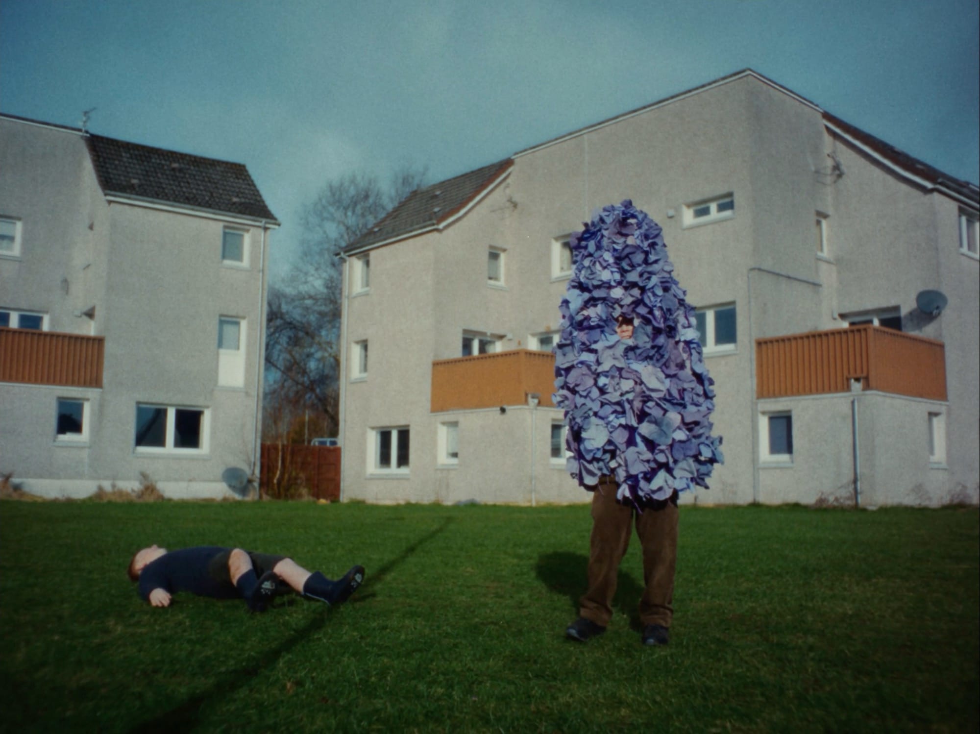 Pal organized several workshops around the U.K. in partnership with Ffern, attended by more than 100 children who told stories, made paintings, and conceived of characters inspired by folklore and springtime. Through a series of imagined beings like the Flower Thing, Naomi the Flute Bird, and the Frost Queen, we glimpse youthful inner worlds—no screens here—brought to life in costumes made by Clarisse d’Arcimoles and Frank Gallacher.